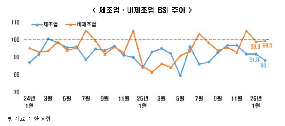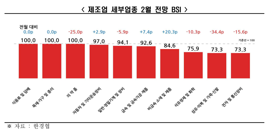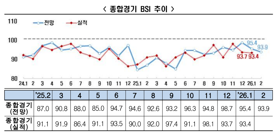 -2月全体経済見通しBSI(939)、3年11カ月連続で基準値(100)を下回る